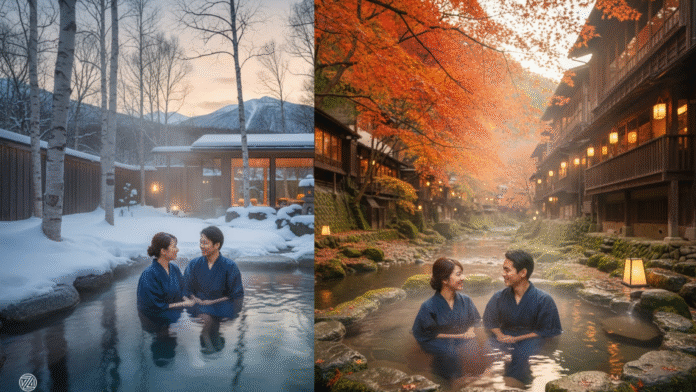 Japan has hundreds of hot spring areas, but only a select number offer truly exceptional private onsen rooms that blend luxury, tradition, and scenic beauty. From the volcanic mountains of Hakone to the snowy riversides of Hokkaido and the bamboo forests of Kyoto, these ryokans provide the perfect setting for romance.